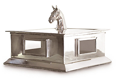 De bijna groteske vormgeving - het object zou net zo goed kunnen worden ingezet als bonbonnière in een op La Grande Bouffe lijkende context - blaast het oubollige van het vertrouwde uit uw geest. De overdaad aan zilver krijgt zijn contrapunt in de roestige bak, die als degelijk fundament dient voor het fragiel gehamerde zilver. "Melktijd" 2012 zilver 925 en ijzer, unicum ∅ 43 cm, h 50 cm € 9.000 |