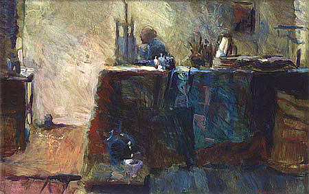 Zelfportret in atelier 1990 - acryl op papier - 29 x 46.5 cm