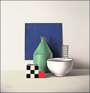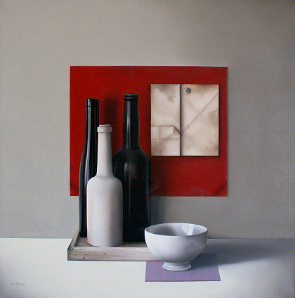 "Stilleven met Zwart-wit Blokje" 1987, olieverf/doek, 60 x 60 cm (verkocht / sold)