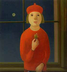 Een vroeg schilderij van Karel Wiggers: "Meisje bij Stilleven" 1965, olieverf/paneel, 70 x 90 cm |