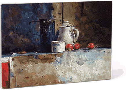 Giclée print after Ben Snijders's painting "Three Rose Hips" printed on canvas, numbered and signed by Ben Snijders 24 x 31 cm, edition of 99 - € 400 (stretched and varnished - € 430) Cost of shipping (unstretched and unvarnished): Inside the Netherlands - € 11 To destinations outside the Netherlands - € 22 |