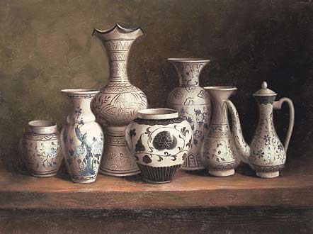 ..........., "Theepot en Vazen" 2002, olieverf/paneel, 30 x 40 cm