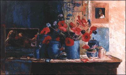 "Klaprozen in Aanwezigheid van Sanne" 1992, acryl/papier op paneel, 37 x 62 cm
