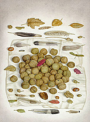 | Eliot Allsop 'Kom met Kastanjes' 2005 Bowl with Chestnuts graphite drawing 16 x 14,5 cm |