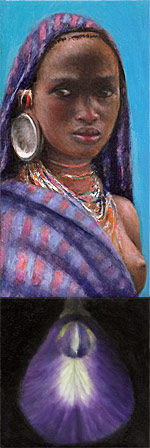 '"Black Pearl II - Met bloem Clitoria Tenatea' 2017 olieverf/koper, 15 x 5 cm € 2.500 | 'Appelvink II' 2017 olieverf/koper, 10 x 15 cm € 2.600 |