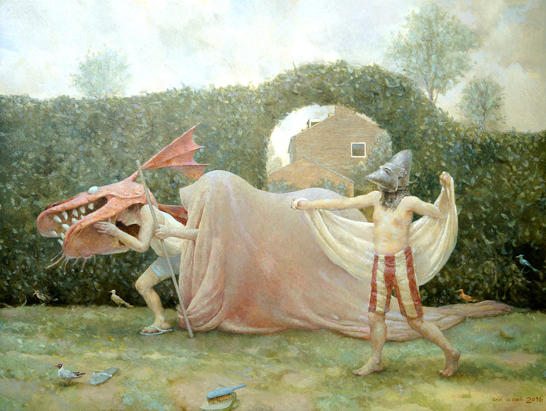 "Drakendoder" 2016 olieverf/paneel 30 x 40 cm - € 3.600
