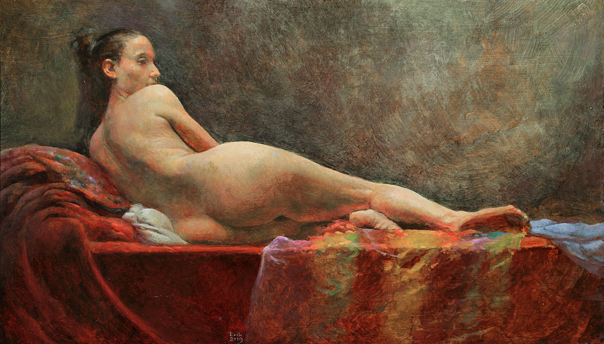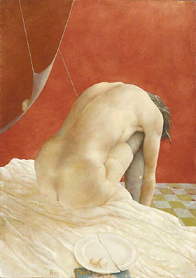 "Naakt op Rode Achtergrond" 1992 olieverf/paneel 54 x 38 cm - € 4.500