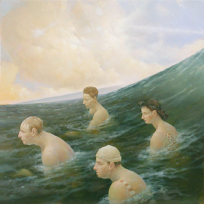 Recently sold![]() "Orbiting Mars" 2017 olieverf/paneel 49 x 86 cm (verkocht - sold) Hoe groot zou het verschil zijn met wat u ziet op het schilderij en wat door het hoofd speelt van de schilder. U moet namelijk beseffen dat een idee in een split second ontstaat, dat het uitwerken vervolgens weken tot maanden duurt, maar dat de loop van de gedachten van de schilder onstuitbaar doorgaat. Wat kan leiden tot aanpassingen, maar ook tot nieuwe schilderijen. Maar dat Erik van der Esch zich met groot plezier overgeeft aan zijn eigen grilligheden spat van dit schilderij af. How big would the difference be with what you see in the painting and what goes through the painter's mind. You have to realize that an idea arises in a split second, that it then takes weeks to months to develop, but that the course of the painter's thoughts continues unstoppably. Which can lead to adjustments, but also to new paintings. But the fact that Erik van der Esch happily indulges in his own capriciousness is reflected in this painting. ![]() "Zomerkamp" 2023 olieverf/paneel 65 x 80 cm (verkocht - sold) ![]() "Toeschouwers" 2007 olieverf/doek 80 x 60 (verkocht - sold) ![]() ![]() Erik van der Esch "Schouwspel" 2022 olieverf/paneel 61 x 75 cm - (verkocht - sold) ![]() "Zonnekoning" 2019 olieverf/paneel 53,5 x 61 cm (verkocht - sold) Hoewel titel en afbeelding overduidelijk zijn gedateerd, is de problematiek van alle tijden. Wat regeerders ook betogen, het komt toch niet zoveel voor dat zij zich kunnen of willen inleven in de omstandigheden waarin hun burgers zich bevinden. Jazeker, de Zonnekoning beschikt over goedgetrainde vazallen, die voortdurend een geruststellend status quo bevestigen, maar o jee, o wee, hoe anders kan het elders zijn, toen, en nu. Of dit als een kritisch schilderij beschouwd moet worden, vraagt u zich af? Ik denk dat Erik van der Esch over meer compassie beschikt dan actievoerders zich kunnen voorstellen. Door deze picturale stellingname vervormt Van der Esch de werkelijkheid tot een theatrale groteskheid. Zodoende maakt hij het voor- en tegenstanders mogelijk om afstand te nemen en eventueel impliciete agressie en vooringenomenheid, hoe begrijpelijk ook, in te tomen. Uiteindelijk is dat wel zo effectief. Maar los van de boodschap, en herkenningspunten even latend voor wat ze zijn, schetst het schilderij een aandoenlijk beeld van het menselijk vermogen zich in vreemde situaties te manoeuvreren. Erik van der Esch laat zien dat hij, ondanks hun veelvuldig falen, van mensen houdt. ![]() "De Meesterproef" 2020 olieverf/paneel 40 x 63 cm (verkocht - sold) Helpt het als de mensch zich in opperste vertwijfeling afvraagt of die nou iets te zeggen heeft over zijn eigen lot? Is die woeste willekeur van zich in schijnbaar chaotische rangschikking manifesterende gebeurtenissen, onderhevig aan de nukken van een hogere macht, om het even of dat rampen of zegeningen zijn? Of is het juist de mens zelf, die zijn eigen destructieve potentie onderschat, intussen zijn eigen scenario idealiseert, en dus het deksel op zijn neus krijgt? Erik van der Esch liet zich voor dit schilderij inspireren door een gedicht van Alex van Warmerdam, waarin de schepping passeert als een lichtvoetig gebeuren. Ook dat kan natuurlijk. ![]() "Conference at Sea" 2019 olieverf/paneel 61 x 80 cm (verkocht - sold) U mag zich best afvragen of de schuit op het schilderij het wereldtoneel symboliseert, doorlopend vol gekrakeel en dreigende rampen als die is. Of, als u daar de voorkeur aan geeft, de directiekamer van een tegen de ondergang strijdende bank. Het gaat Erik van der Esch (1956) niet om de gelijkenis, maar omdat het vrijwel onmogelijk is je te onttrekken aan die stortvloed van sensationeel nieuws, dringen al die thema's hoe dan ook zijn geest binnen, en drukken hun stempel op wat er uiteindelijk op het schilderij komt te staan. ![]() "Feestgangers" 2017 olieverf/paneel 35,5 x 35,5 cm (verkocht - sold) ![]() "Outrageous Proposals" 2018 olieverf/paneel 52,7 x 68,3 cm (verkocht - sold) ![]() "Dagdroom" 2009 olieverf/doek 100 x 150 cm (verkocht - sold) ![]() "Rotonde" 2015 olieverf/doek 65 x 100 cm (verkocht - sold) ![]() "Masquerade" 2015 olieverf/paneel 70 x 100 cm (verkocht - sold) ![]() "Italiaanse Fantasie I" 2002 olieverf op doek 70 x 100 cm (verkocht - sold) ![]() "Ballon" olieverf/paneel 1990 90 x 80 cm (verkocht - sold) ![]() "Bussum aan Zee" olieverf op paneel 2014 80 x 42 cm (verkocht - sold) ![]() "Italiaanse Fantasie II" 2005 olieverf op doek 80 x 80 cm (verkocht - sold) ![]() "Theaterdroom" olieverf/doek 1993-2006 80 x 100 cm (verkocht - sold) ![]() "Staand Naakt op de Rug Gezien" 2006 (verkocht - sold) ![]() "Zwemmers" 2013 olieverf/paneel - 44 x 44 cm (verkocht - sold) |