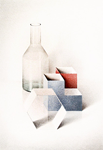 Lithograph B "Glass and Paper Forms I" 1988 image 49 x 34 cm, paper 54 x 38 cm two stones,seven colours, edition of 300 € 380