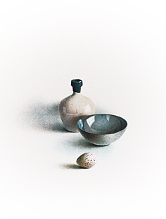 Lithograph L "Egg, Blue Bowl, Stone Bottle" 1991 image and paper 65x50 cm two stones, five colours, edition of 275 € 450