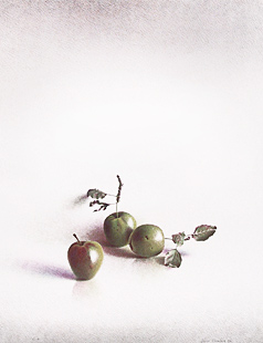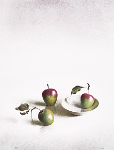 Lithograph P "Three Apples and Bowl" 1993 image and paper 65 x 50 cm two stones, five colours, edition of 275 € 450 |