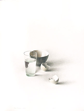 Lithograph R "Glas Water, Zwarte Kom en Eierschalen" (Glass of Water, Black Bowl and Egg Shells) 2002 65 x 50 cm 2 stenen, 6 kleuren, oplage 250 € 450
