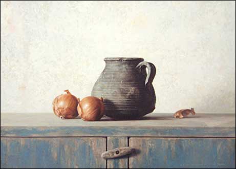 "Kan en Twee Uien" (Jar and two onions) 2002, olieverf/paneel, 50 x 70 cm (verkocht / sold)