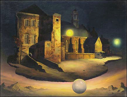 "Kerk op Drift" 1976, olieverf/doek, 23 x 30 cm (afmetingen ex. lijst)