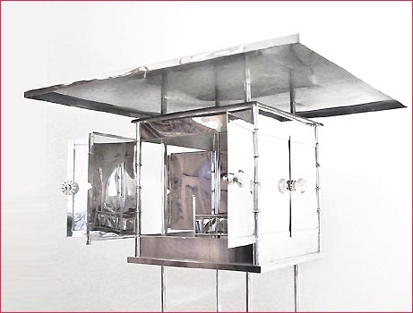 | At Brandenburg (1950) koos spontaan voor de herfst. Brandenburg neemt in de zilverwereld een aparte plaats in. Al jaren maakt hij ongewone sculpturen, waarin andere materialen een zelfstandige rol spelen. Dat kan een stuk zwart marmer zijn, of roestige onderdelen van onbestemde machines. Als er iemand is die resoluut de codes van het genre overboord heeft gezet, dan is hij het wel. En ben je net gewend aan sculpturen als "Lekkage" of "Verstild", dan verbaast hij met een koffie- en theestel, met onvoorstelbaar vakmanschap geconstrueerd, dat in zijn vormgeving rakelings langs de stijlgrenzen van Art Deco scheert, maar onder meer door een onverwacht grillig patroon in de zigzaglijnen met een plof de toeschouwer weer in de eenentwintigste eeuw zet. Zijn sculptuur "Herfst" heet eigenlijk "Het Toppunt van Herfst". In het kleine kamertje op de vier dunne staken staat een zilveren bedje, met zilveren dekbed, dat half is opengeslagen. Op de grond ligt een minuscuul eikeltje. Een man zal dat maar vinden, in de herfst van zijn leven. |
